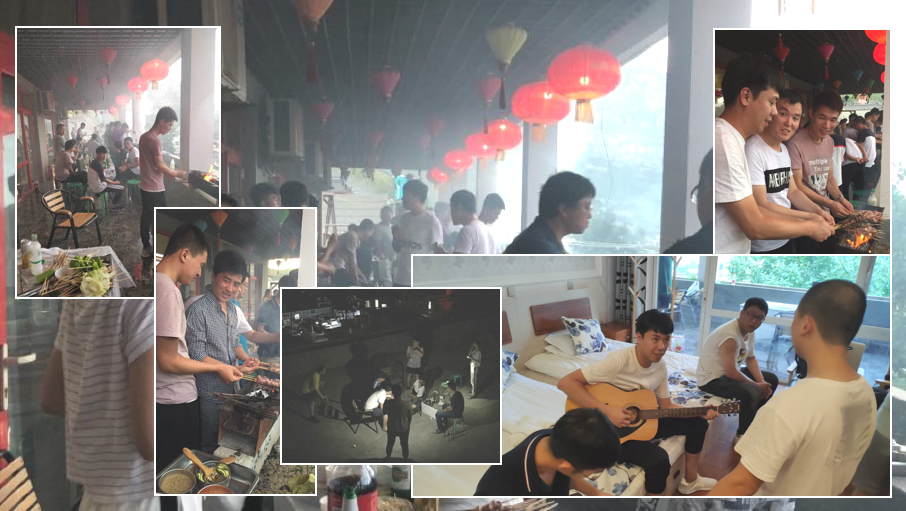 接下來小伙伴們分為五組進(jìn)行燒烤嘍。我們把自己帶來的食材分發(fā)給五組,每一租都有一個(gè)燒烤大師,看看這場面;小伙伴們多才多藝啊,瞧,還有彈吉他助興的;散場之后竟還有來宵夜的。