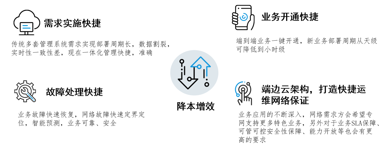 業(yè)務(wù)運(yùn)維保障能力需求提升跨域跨廠家網(wǎng)絡(luò)告警、性能多維映射能力,針對業(yè)務(wù)端到端呈現(xiàn),實(shí)現(xiàn)業(yè)務(wù)全景告警、性能不同維度指標(biāo)投影,提升業(yè)務(wù)SLA級別。